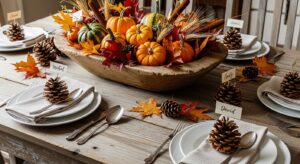 Add a natural touch to your dinner table with pinecone place cards. Write guest names on small tags and tuck them into pinecones. They double as decor and thoughtful keepsakes.