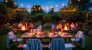 Since fall weather can be crisp, keep guests comfortable with blankets, outdoor heaters, or fire pits. String fairy lights or hang lanterns around your garden to create a magical atmosphere as the sun sets.