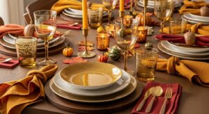 Opt for plates, napkins, and glassware in seasonal hues such as amber, gold, or deep red. Mixing patterns and textures adds charm, making your Thanksgiving table feel curated and festive.