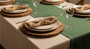 For a rustic charm, tie napkins with twine and tuck in a sprig of rosemary or wheat. If you’re leaning toward a modern style, go for sleek metallic napkin rings or minimalist ceramic dishes. These details show care and make your table unforgettable.