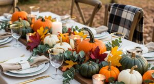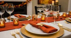 Metallic accents like gold cutlery or bronze chargers can add a luxurious touch without overpowering the natural autumn feel.