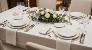 Keep the centerpiece low enough so guests can see each other and pass dishes easily. Prioritize comfort, accessibility, and flow—your guests will appreciate a table that’s both stunning and practical.