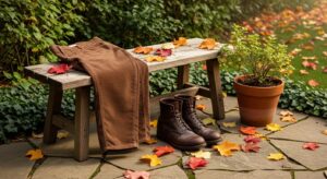 For the lower half of your garden gnome costume, think practical and earthy. Choose corduroy, linen, or cotton pants in warm, natural tones like tan, brown, or olive. Roll them up slightly at the bottom to show off your boots.