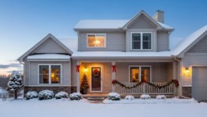 Choose warm whites, lanterns, fireplaces, and candles to make the house feel cozy.