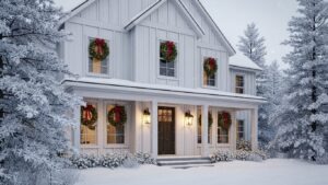 Combine everyday suburban design with festive lighting, a cozy porch, and snow-covered landscaping. Perfect for realistic roleplay.