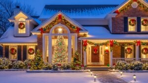 Garlands, wreaths, sleds, nutcrackers, reindeer, and holiday lights elevate the charm.