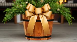 A soft gold ribbon adds elegance without overpowering natural greens.