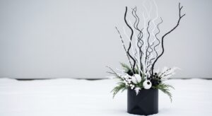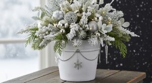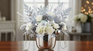 Use flocked greenery, white branches, and silver accents for a snowy, serene look.