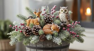 Combine moss, twigs, pinecones, and evergreens for a rustic, earthy design.