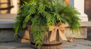 Combine cedar, pine, and fir branches for a lush, traditional winter planter that lasts throughout the entire season.
