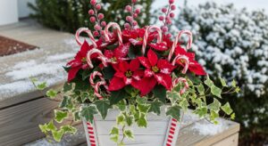 Red-and-white striped sticks or ribbon add playful holiday energy.
