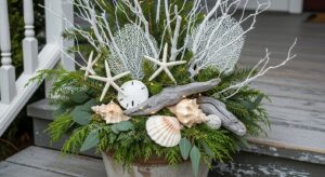 Add shells, driftwood, and blue ribbon for a winter coastal theme.